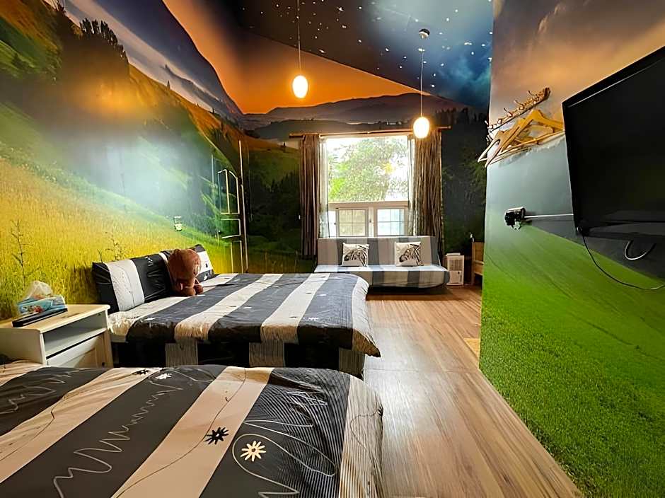 Providing free toiletries, this family room includes a shared bathroom with a shower and slippers. The spacious family room provides a TV with cable channels, a private entrance, soundproof walls, an electric kettle as well as mountain views. The unit offers 6 beds.